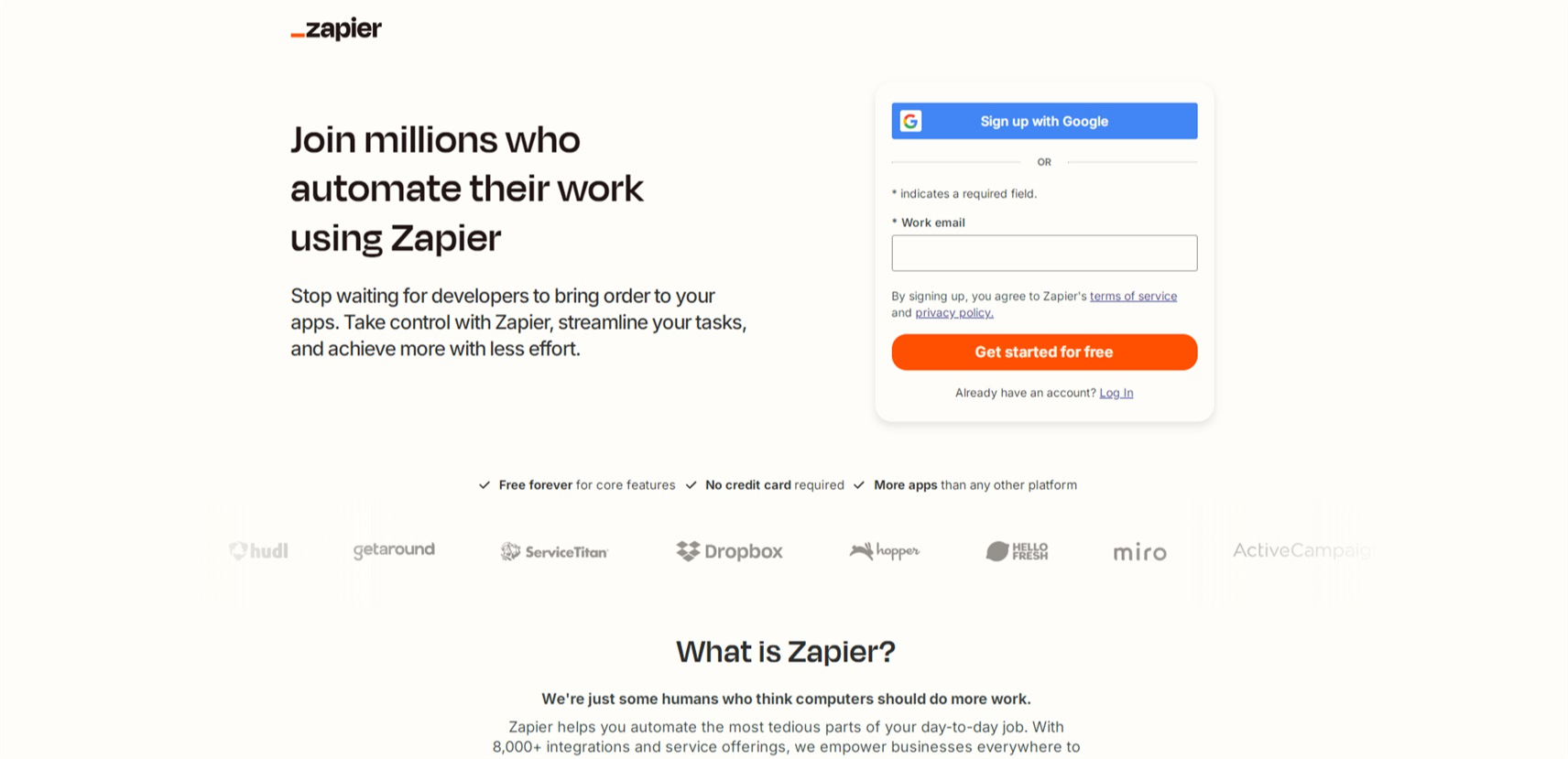 Zapier是无代码自动化工具,专门设计用于连接不同的网络应用程序。它不同于传统的API开发,所以您不需编写代码就能实现应用间的集成。当您使用Gmail、Slack、Google Sheets、Notion、HubSpot等多个应用时,您需要不断地在它们之间切换、复制和粘贴数据,而Zapier通过创建自动化工作流,可以将这些重复、耗时的手动任务交给机器完成。